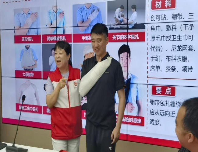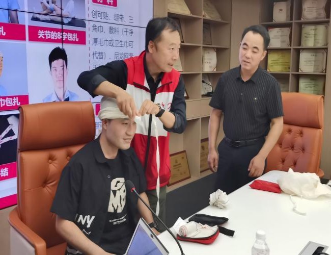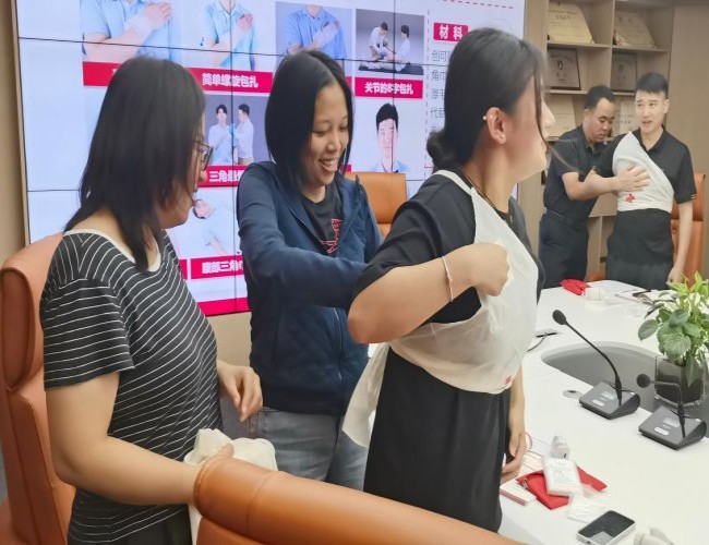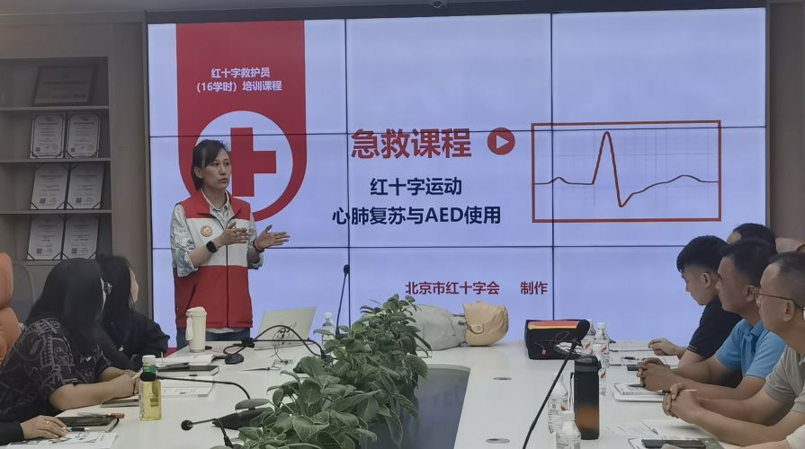 本次培训紧密围绕应急救护的核心知识与实操技能展开。北京市红十字会的专业讲师团队通过理论讲解、案例分析和现场演示相结合的方式,为参训员工带来了内容丰富、结构清晰的八大模块课程:涵盖红十字运动基本知识、现场急救概述、心脏骤停与心肺复苏(CPR)技术、呼吸道异物梗阻的海姆立克急救法、创伤现场救护的止血、包扎、固定、搬运四项基本技术、特殊损伤的现场处置、常见急症(如脑卒中、心肌梗死)与意外伤害(中暑、溺水、烧烫伤等)的应对措施,以及灾害与事故中的避险与自救原则。