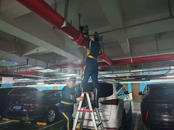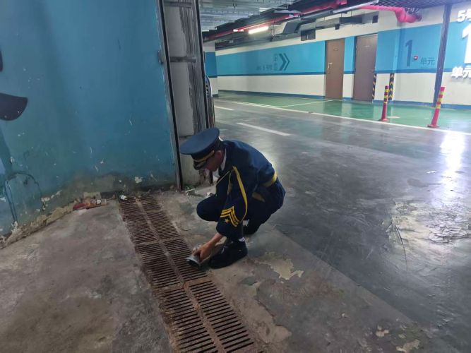在秩序部开展处置工作的同时,保洁部同步行动:保洁人员携带吸水机、拖把、水桶等工具到达现场,对地面积水进行快速清理,防止积水渗透引发墙体损坏或地面湿滑导致业主滑倒;对于积水较多的区域,采用 “分区清理、逐步推进” 的方式,确保积水在最短时间内清除,最大限度降低 “险情” 对业主生活的影响。